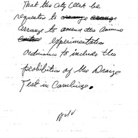 - Order #38- mayor Vellucci re: prohibition against Draize testing in the Animal Ordinance