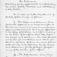 - Ordinance providing for the appointment and prescribing the duties of City Marshal and establishing a City Watch; the Mayor and Aldermen shall appoint a City Marshal every municipal year.