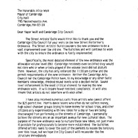 - Comm. from Stephen Baird , Street Artists' Guild in support of the Street Performace Ordinance with a request that the structure be reconsidered