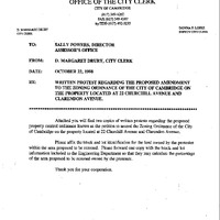 - Zoning petition affecting several lots at Churchill and Claredon Avenues from Planning Board
