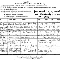 - Petition from 14 residents recording themselves in favor of an ordinance to regulate animal research in Cambridge.