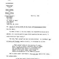 - Agenda Item No. 9 Re: enclosed opinion from the City Solicitor in response to Awaiting Reprot Ite No. 29 on parcel of land at the corner of Day St. & Mass. Ave