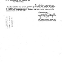 - Petition of James P. Coughlin requesting that the Council establish an ordinance making the feeding of pidgeons on the pedestrian island in Central Sq.