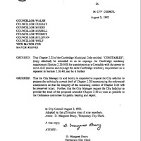 - Non-Consent Order #24- Councillors Walsh, Russell, Duehgay, Myers, Sullivan, Toomey, Mayor Reeves, Councillor Wolf and Viee Mayor CYR re: Amendments to Chapter2.20 of the Cambridge Municipal Code- Constables