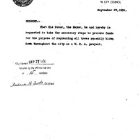 - Order to replant all trees recently blown down as a W.P.A. project.