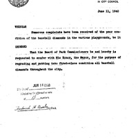 - Order-regrading baseball diamonds in City.