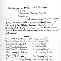 - Communication from the members of the Mother's Workshop expressing their approval of the work of Mr. Stephen Mahoney, Supt. of Recreation of the City of Cambridge.