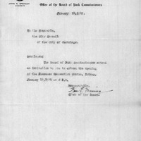 - Communication from Park Commissioner inviting City Council to attend the opening of Boardman recreation Centre on Friday June 17, 1941 at 8 o'clock P.M.