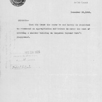 - Order relative to appro. for shelter building at Corporal Burns Playground.