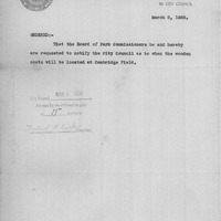- Order rel. to wooden seats at Cambridge Field.