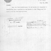 - Order relative to erection of bleachers on Russell Hoyt Playground.