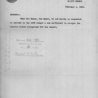- Order rel. to Mayor appropriating money for re-opening Granite St. Playground.