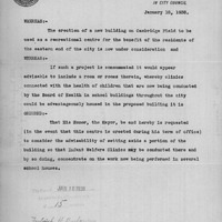 - Order rel. Infant Welfare Clinic in proposed new building Cambridge Field.