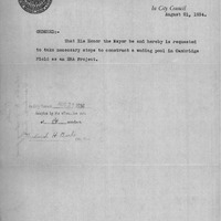 - Order relative to wading pool in Cambridge Field.