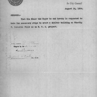 - Order relative to erection of shelter building on Timothy F. Corcoran Playground.