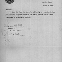 - Order relative to wading pool on John J. Ahern Playground.