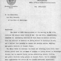 - Communication from Park Commissioner in response to two (2) orders of City Council relative to fence on Library grounds and relative to permits for soccer, hurling and gaelic football at Russell Field.