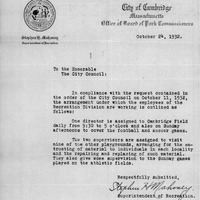 - Communication from Supt. of Recreation in response to an order of City Council adopted on Oct. 11, 1932 rel. to the hours that the three remaining employees of the Recreation work on the playgrounds.