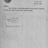 - Order relative to benches on Public Library grounds.