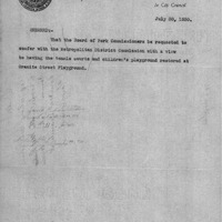 - Order requesting Park Comm. to confer with Met. District Comm. relative to tennis courts at Granite St. Playground.