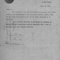 - Resolve relative to relocating baseball diamond on Magazine Beach Playground.