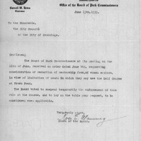 - Communication from the Board of Park Commissioners in response to an order of the City Council adopted on June 4, 1935 relative to reducing the membership fees of women at the Municipal Golf Course.