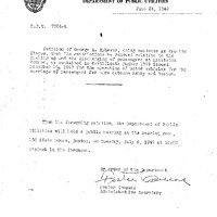 - Communication from Dept. of Public Utilities with notice of hearing to be held on Tuesday July 6, 1948 on Petition of George A. Myhaver doing business as Granite Stages relative to the picking up and discharging of passengers at Littleton Common
