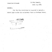 - Order City Electrician to install a street light on the pole on Hardwick Street at Portland St.