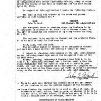 - Application of Joh F. Ward for Slaughter House License in Bldg at rear of 177-179 Sherman St. for year ending April 30,1946