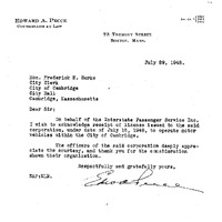 - Committee on Public Service petition of Interstae Passenger Service Inc. for license of Bus Route in Cambridge for carriage of passengers from Charles Bridge and Prison Point