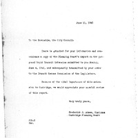 - Communication from Cambridge planning board proposing removal of possible alternate route for extension of the rapid transit system for Harvard Square