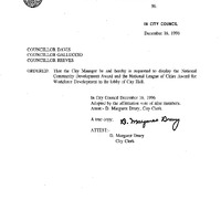 - Councillors Davis, Galluccio and Reeves re: Display the National Community Development Award and the National League of Cities Award for Workforce Development in the lobby of City Hall.