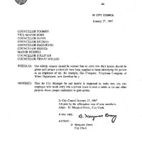 - Councillor Toomey re: Make sure any city employee who needs entry into a private home to read a meter or for any other purpose shows proper credentials to gain access.