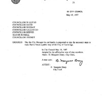 Councillor Sullivan re: Make Harris STreet a public way of the City of Cambridge.
