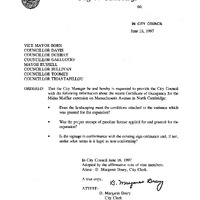 - Vice Mayor Born re: Information about the recent Certificate of Occupancy for the Midas Muffler extension on Mass Ave in North Cambridge.