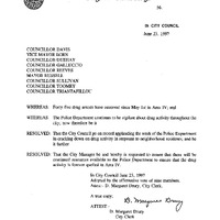 Councillor Davis re: Applaud the work of the Police Department in cracking down on the drug activity in Area IV.